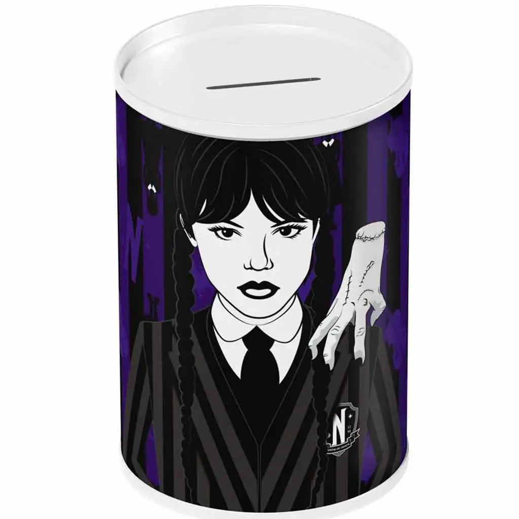 Upoznaj uzbudljivi svijet štednje s metalnom kasicom u obliku valjka Luna Wednesday! Ova tamna i stilska kasica idealan je izbor za sve obožavatelje Wednesday Addams koji žele naučiti osnove štednje. Mračan, ali šarmantan izgled Wednesdayinog lika zasigurno će privući pažnju djece i potaknuti ih na skupljanje novca.