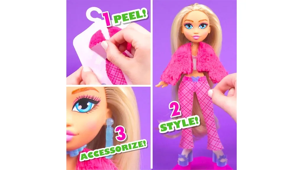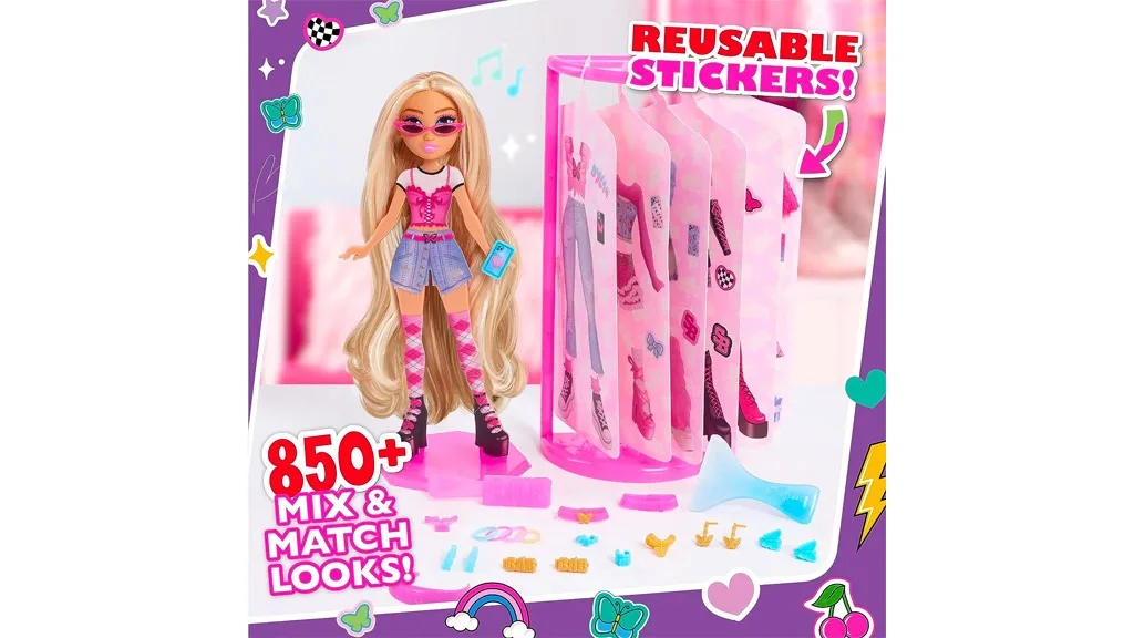 Svaka ravna lutka dolazi s brojnim odjevnim predmetima izrađenim od recikliranih naljepnica. Te odjeće vise kao naljepnice u ormaru koji se nalazi u pakiranju, tako da djeca mogu lako pretraživati kroz njih. Svaki od šest listova naljepnica sadrži kompletnu odjeću (gornji dio, donji dio, dodatke i cipele), ali djeca mogu slobodno miješati dijelove kako bi stvorila bezbroj kombinacija. Naljepnice se lako skidaju i lijepe, ali mlađoj djeci možda će trebati malo pomoći. Set također uključuje alat koji olakšava skidanje i lijepljenje odjevnih predmeta!