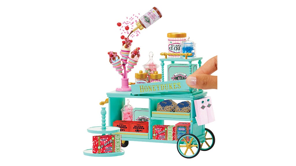 Omiljeni fantastični deserti možda su mini veličine, ali su i dalje jednako slatki kao i uvijek. Obitelji mogu doživjeti čaroliju slatkičarnica Čarobnjačkog svijeta, jer tajanstvene kapsule sadrže sve što je potrebno za ponovno stvaranje nezaboravnih poslastica iz franšize Harryja Pottera. Svaka kapsula sadrži omiljene deserte obožavatelja, poput "Praskavih bombona, Bertie Bottovih graha svih okusa i Čokoladnih žaba."Sakupljači mogu povesti svoje slatkiše na mini avanture uz pomoć Make It Mini Harry Potter Honeydukes Trolley. Ovaj čarobni set sadrži sve dijelove za izgradnju kolica, kao i ekskluzivne mini replike hrane i dodatke s temom slatkiša, poput boca, pladnjeva, kutija za kolače i još mnogo toga.