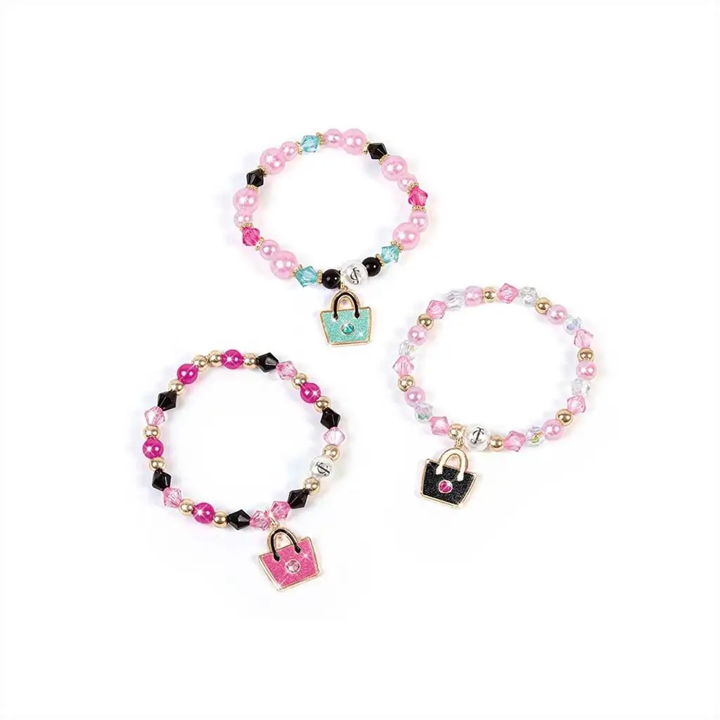 Set uključuje prekrasne perle, elegantne privjeske i 3 posebne mini torbice koje ne služe samo za pohranu, već i kao modni dodatak. Djeca mogu slobodno kombinirati ružičaste, zlatne, crne i tirkizne nijanse te tako kreirati potpuno jedinstven nakit. Narukvice se nižu na elastičnu vrpcu, pa su udobne za nošenje i mogu se uvijek ponovno dizajnirati.