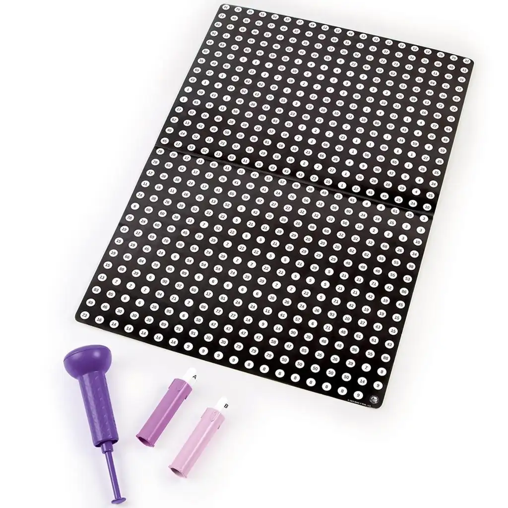 Uz predložak sa šifriranim brojevima u kutiji djeca mogu pratiti upute točku po točku, tako da se korak po korak otkriva konačan rezultat – prekrasan točkast poster koji mogu objesiti i na zid svoje sobe. Zahvaljujući ergonomski oblikovanom alatu za žigosanje, mogu ga lako koristiti i manja djeca.