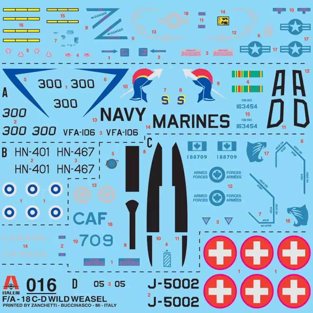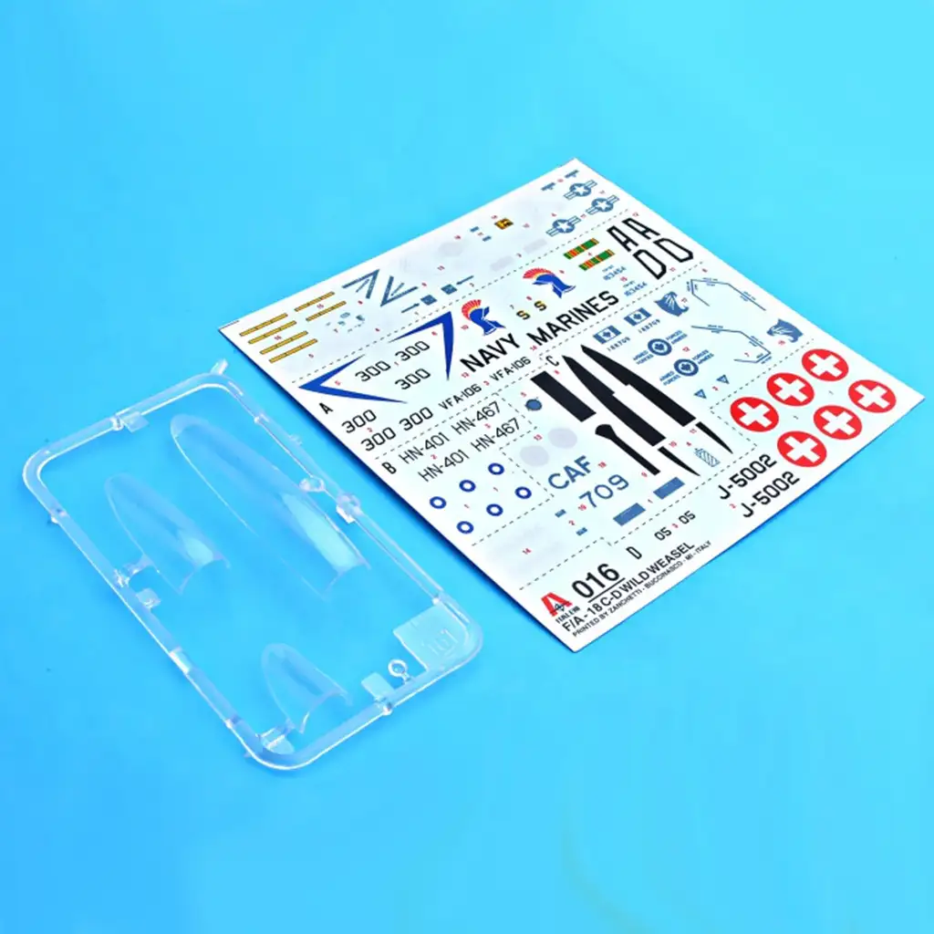 Ovaj Italeri model u mjerilu 1:72 vjerno prikazuje detalje F/A-18 Horneta, omogućujući izgradnju jednosjedne i dvosjedne (C i D) varijante. Model ima precizno izrađene linije panela, detaljnu pilotsku kabinu i opcije naoružanja, omogućujući realističan prikaz zrakoplova. Sastavljeni model ima duljinu od oko 23 cm i raspon krila od 17 cm.