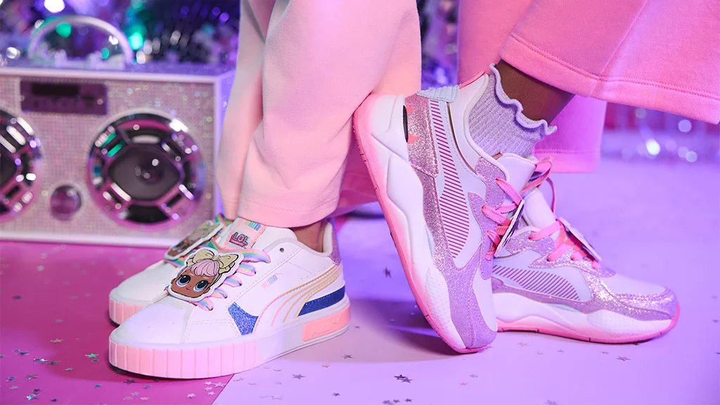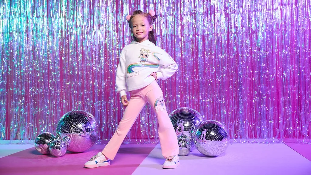 Kolekcija odjeće PUMA x L.O.L. Surprise savršena je za opuštanje kod kuće ili za zabavu na igralištu, uključujući trapezice, Sugar and Spice kapuljaču koja se slaže s RS-X tenisicama, trodjelne setove, majice i još mnogo toga.