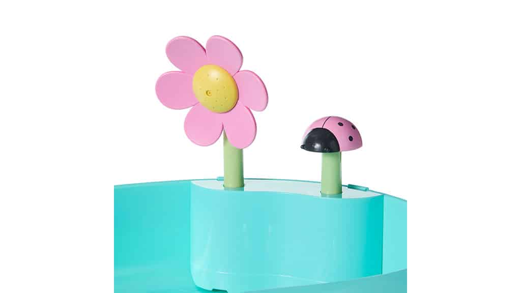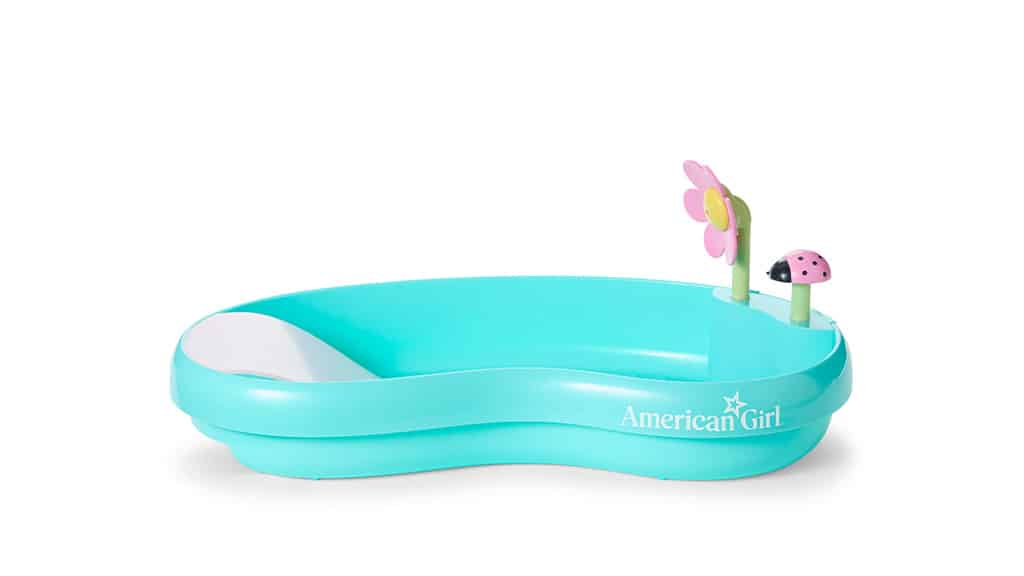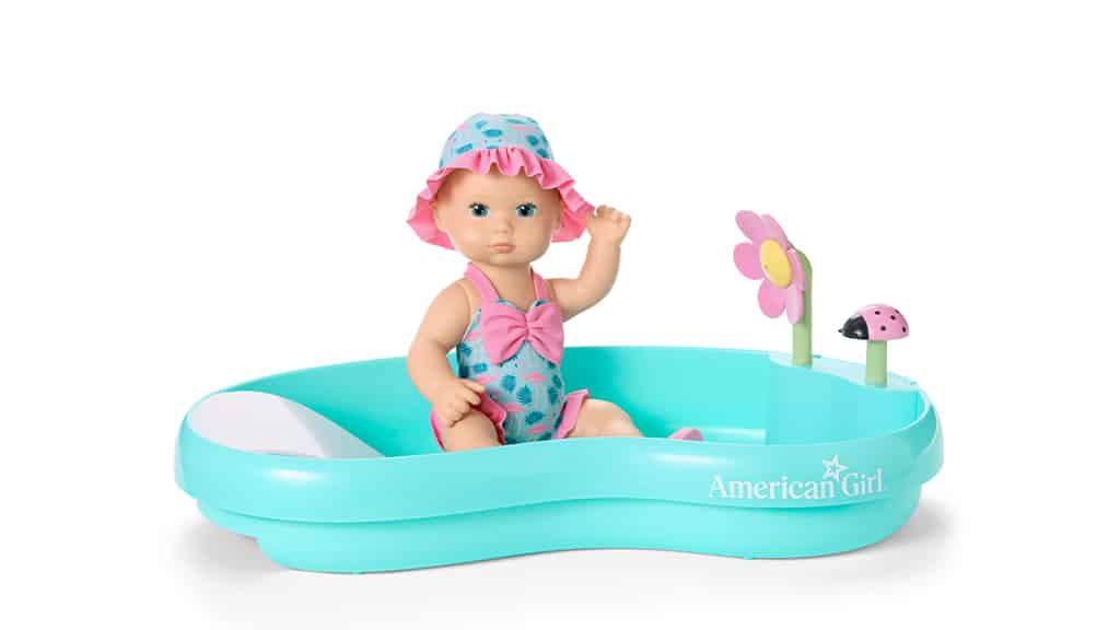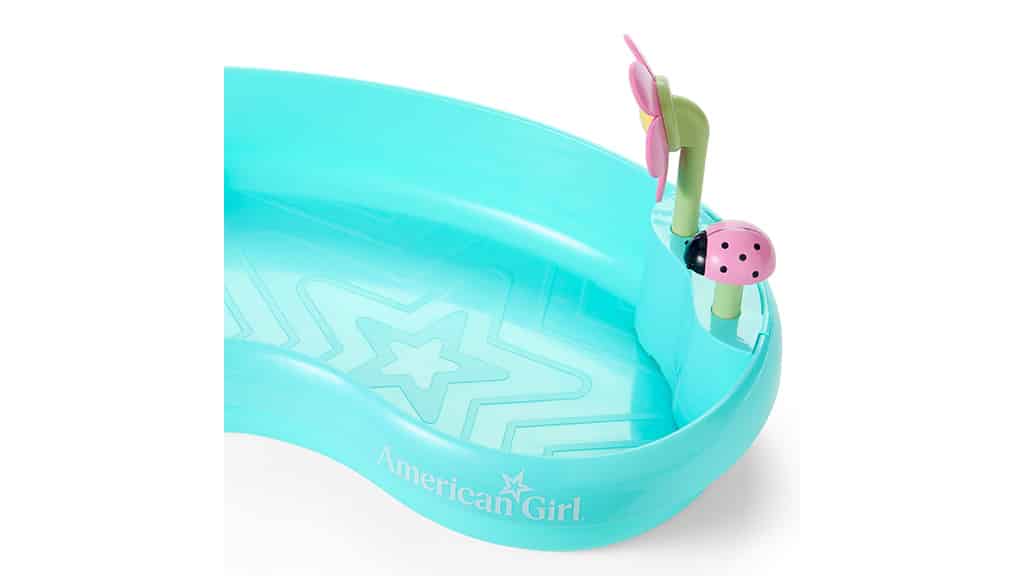 Bazen za igru veličine za bebe, koja savršeno odgovara za American Girl Bitty Baby lutke. Obitelji mogu napuniti bazen vodom, pritisnuti bubamaru kako bi iz tratinčice prskala voda, a lutke mogu spuštati niz ugrađeni tobogan. Bitty Baby lutke se prodaju zasebno. Ovaj bazen za igru pruža djeci izvrsnu priliku za kreativnu i veselu igru, dok razvijaju svoju maštu i finu motoriku. Šareni, veseli dizajn bazena sigurno će zaokupiti pažnju mališana i pružiti sate zabave.