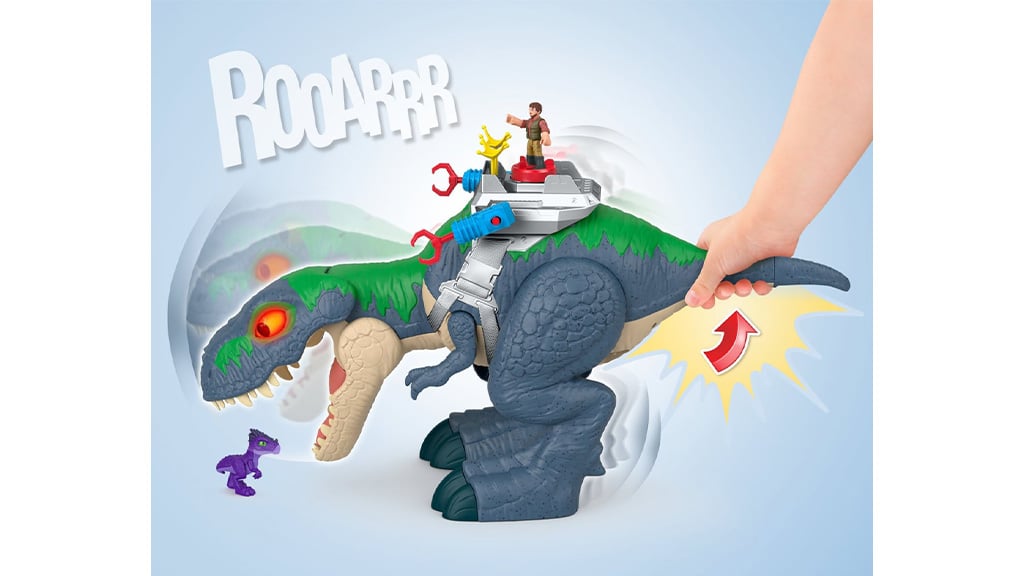 Djeca mogu smišljati avanture s temom dinosaura s ovim ogromnim T. rexom. Ova igračka omogućuje mališanima da puste mašti na volju dok izmišljaju i odigravaju uzbudljive priče. Figura koju je izradio Mattel, sa svojim detaljnom izradom i impresivnom veličinom, pravi je doživljaj za svakog ljubitelja dinosaura.T. rex ima dva načina igre: može se koristiti u načinu rada "krotki" i "napadački". Ovi načini omogućuju djeci da dožive različite avanture, bilo da žele igrati prijateljske ili uzbudljive, akcijske scene. U "krotkom" načinu T. rex se ponaša mirno, dok u "napadačkom" načinu nastupa kao zastrašujući grabežljivac, čime igru čini još zabavnijom i raznovrsnijom.