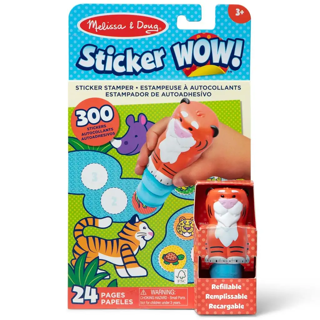 Otkrij novi, zabavan način stvaranja uz Melissa & Doug Sticker WOW! pečat za naljepnice, koji u ovom izdanju ima oblik preslatkog tigra! Djeca obožavaju naljepnice, a sada ih mogu skupljati i koristiti na zaista jedinstven način – sa tigrastim pečatom! Samo pritisni, podigni i već je tu nova naljepnica – čarobno jednostavno i zabavno!