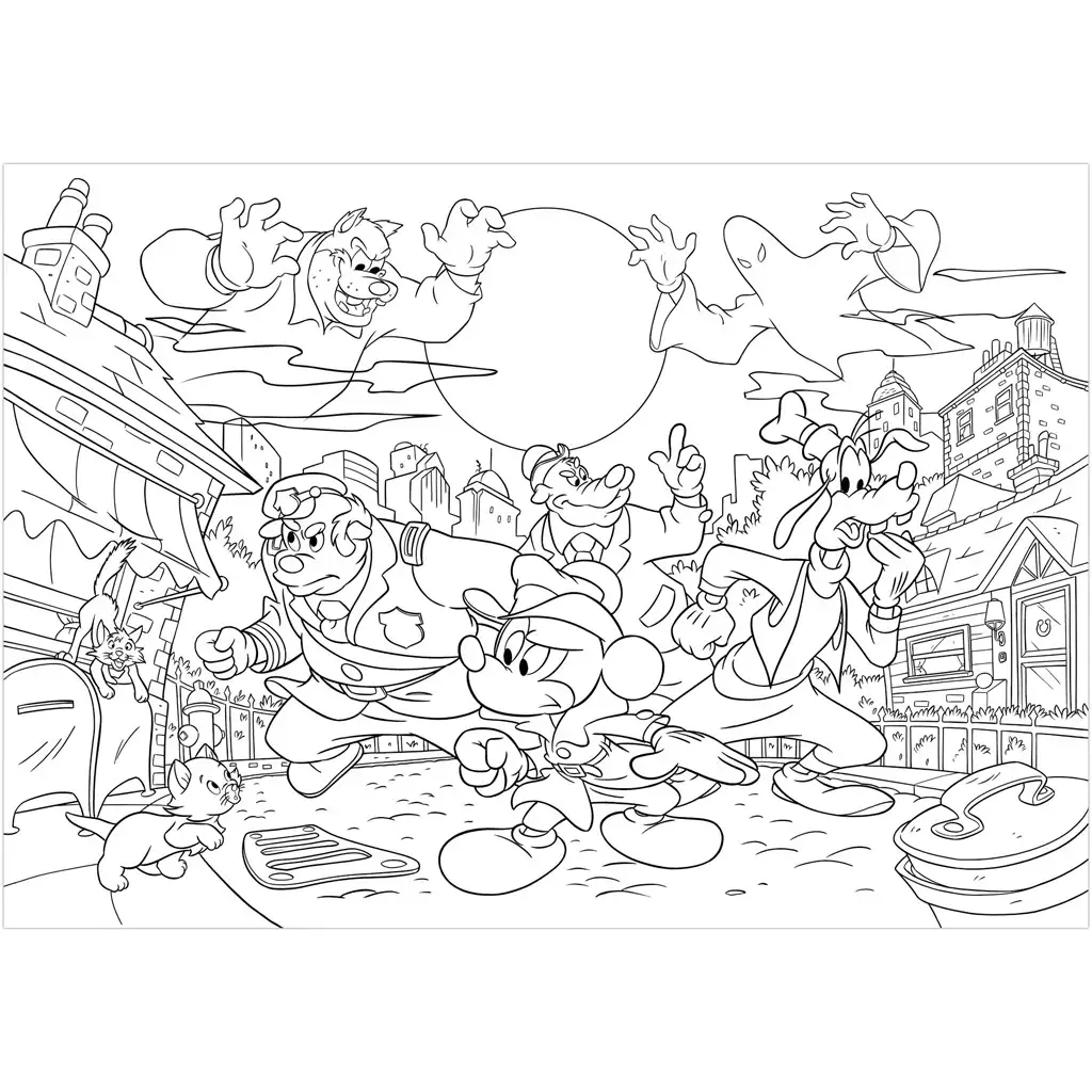 Stražnja strana puzzla služi kao detaljna bojanka, gdje Mickey, Goofy, policajac i tajanstveni zlikovci oživljavaju u crno-bijeloj varijanti – samo čekaju da ih male ruke oboje. Ova posebna igra 2 u 1 istovremeno razvija logiku, moć zapažanja i kreativnost.