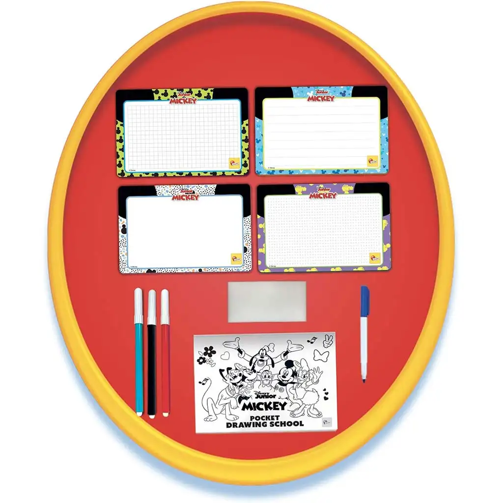 Mali crtaći set Mickey Mouse čarobni je kreativni paket, koji je idealan izbor za svako dijete starije od 3 godine koje želi razvijati svoju spretnost, finu motoriku i vještinu crtanja. Ovaj praktični, džepni crtaći set nudi razigrano učenje i zabavu čak i najmlađima. Na šarenim pločama Mickey Mouse i njegovi prijatelji – Minnie, Pluto, Donald i Goofy – pomažu djeci da korak po korak nauče crtati osnovne oblike, linije i likove.