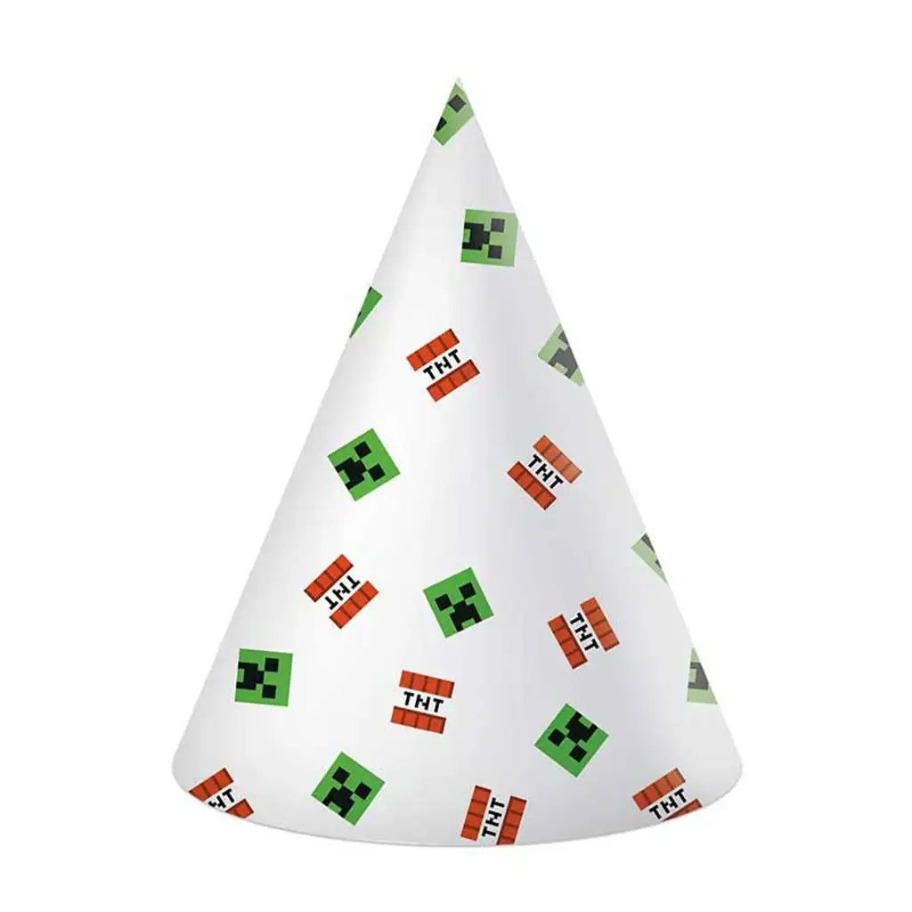 Ako želite učiniti dječji rođendanski party zaista posebnim i nezaboravnim, Minecraft party šešir set od 6 komada bit će savršen izbor! Ove šarene, vesele kape prizivaju svijet jedne od najpoznatijih videoigara, Minecrafta, i zajamčeno će izmamiti osmijeh na lice svakog malog obožavatelja. Klasične kape u obliku stošca ukrašene su živopisnim zelenim Creeper licima i ikoničnim TNT blokovima na bijeloj podlozi, pa je izdaleka jasno da ste upali na pravi Minecraft party!