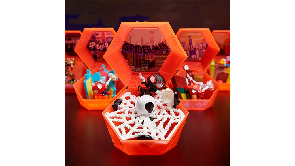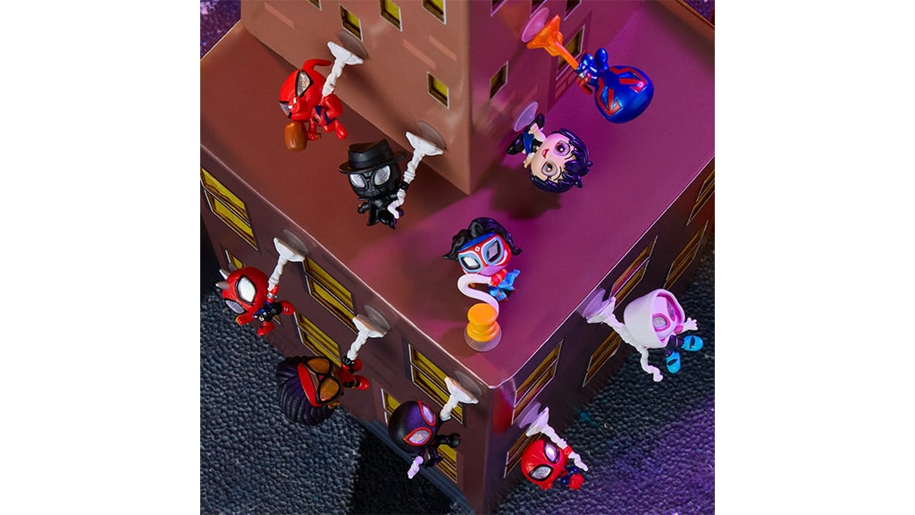 Na zidovima će se penjati junaci koji vise na paukovoj mreži. To znači da će mjesto preplaviti čovjek-pauci koji će se pojavljivati posvuda i stvarati uzbudljivu, akcijom ispunjenu atmosferu. Pripremi se na to, da će se posvuda kretati superjunaci, koji se mogu pojaviti i na zidovima, pa čak i na stropu!Za obožavatelje heroja iz serije Prijateljski susjedi u ponudi se nalaze i kolekcionarske kapsule inspirirane serijalom Spider-Verse. Svaka kolekcionarska kapsula skriva jednog od 10 poznatih bacača mreže iz filmova, poput Spider-Mana, Spider-Gwen, Peni Parker i mnogih drugih likova. Djeca mogu iskušati svoje paukove instinkte i potražiti superrijetke varijante, kao što su Spider-Punk, Spider-Woman, Spider-Man Noir, Spider-Man 2099 ili Peter B. Parker. Svoju kolekciju možeš izložiti u ukrašenim kapsulama s ograničenim izdanjem ili pomoću mreža s vakuumskim čašicama čak i cijeli zid ispuniti herojima bacačima mreže! Ove kapsule ne kriju samo uzbudljiva iznenađenja, već ti omogućuju da na jedinstven način pokažeš svoje omiljene likove i kreativno ukrasiš svoju sobu. Osim radosti skupljanja, razmjena s prijateljima čini ovo posebno iskustvo još zabavnijim!