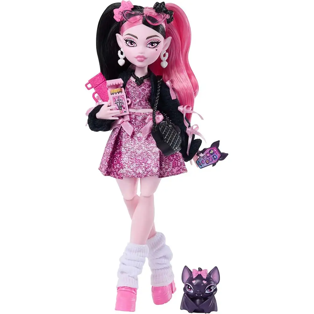 Monster High Draculaura lutka s dodacima savršen je izbor za svakog obožavatelja Monster High-a koji voli modu, jedinstvene likove i pomalo jeziv, ali ipak šarmantan svijet. Draculaura, vampirska djevojka s ikoničnim stilom i simpatičnom osobnošću, jedan je od najpopularnijih likova koja sada dolazi u detaljno izrađenoj verziji s mnoštvom modernih dodataka.