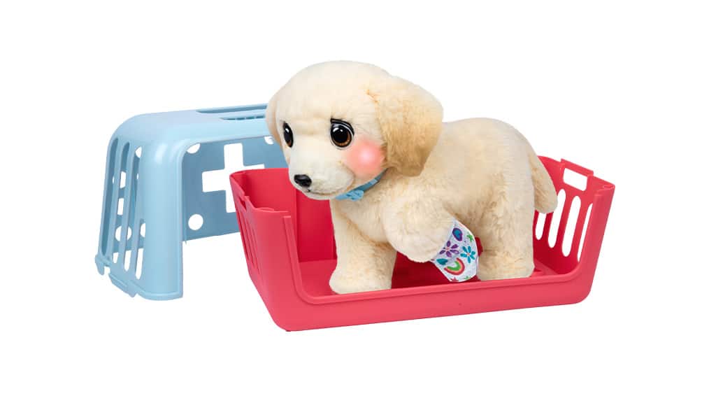 S igračkom Moose Toys Little Live Pets Ouchies Cooper djeca mogu postati pravi mali veterinari, spremni brinuti se i maziti svog ljubimca! Cooper je mekano, slatko štene zlatnog retrivera, koje može proizvesti više od 50 različitih zvukova i reakcija. Potrebna mu je pomoć djece od 5 godina ili starijih kako bi mu izliječili šapicu i da bi se bolje osjećao.Ovaj set za igru sadrži sve što je potrebno za brigu o Cooperu: fiksator, transporter za male životinje i flastere koji se aktiviraju vodom i pretvaraju fiksator u gips. Cooper sretno šeće kada ga djeca maze, ali oprez! Ako djeca stave ruku ispred Cooperova nosa tijekom šetnje, psić bolno cvili jer ga boli šapa.