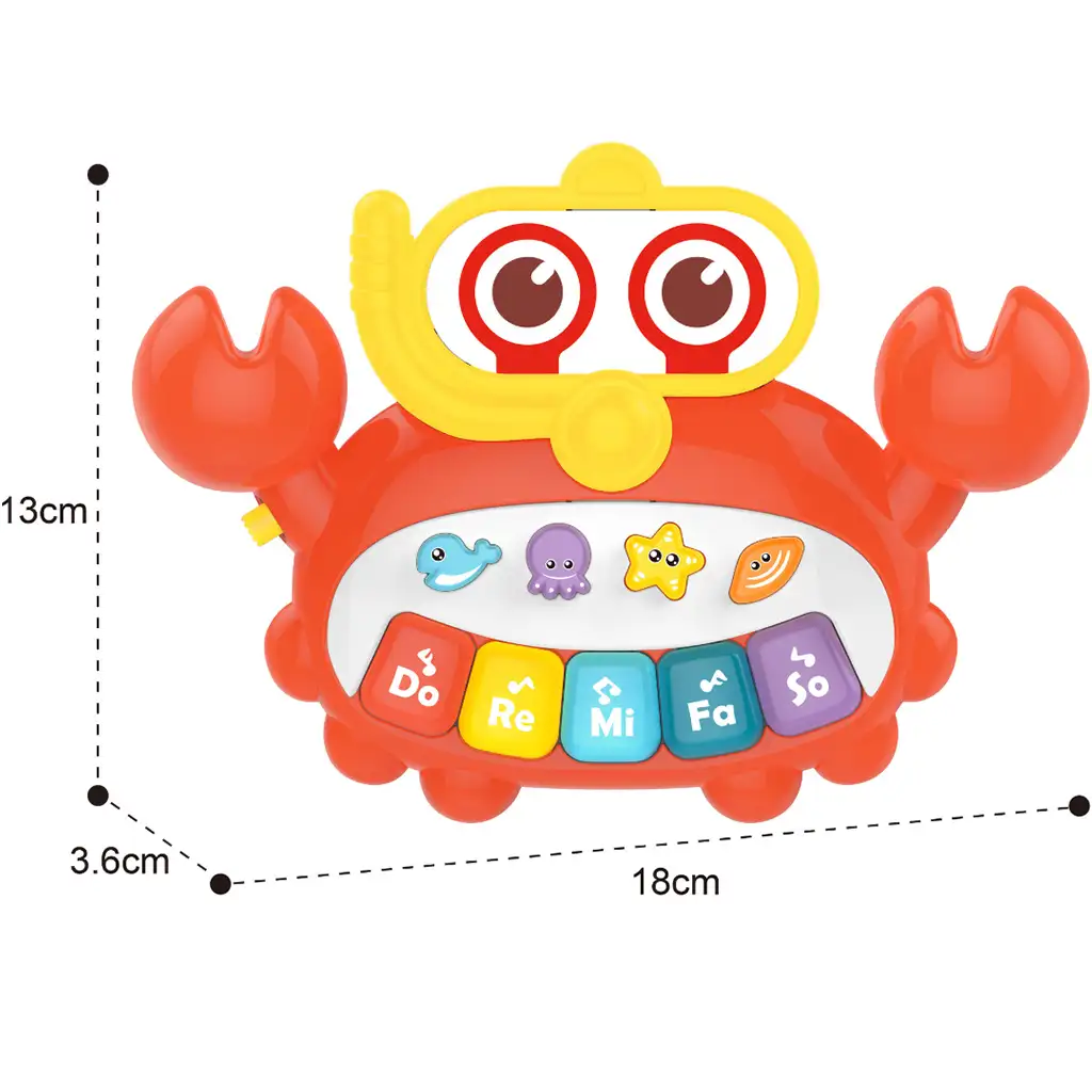 Vesela glazbena rak-pijanist je kreativna i zabavna igračka koja će sigurno privući pažnju i maštu malih djece. Pijanino ima oblik raka koji nosi veselu ronilačku masku i ronilačku cijev, što čini cjelokupni izgled još šarmantnijim.