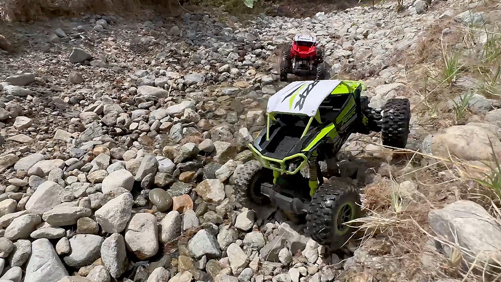 Pogon na četiri kotača R/C omogućuje lako kretanje po neravnom, zahtjevnom terenu. Ova značajka posebno je korisna kada se koristi za terenske avanture ili igru na otvorenom, jer vozilo stabilno i sigurno prelazi različite prepreke, poput kamenja, pijeska ili travnatih površina.