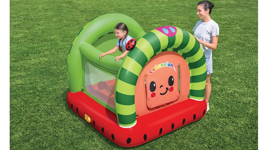 Ova skakalica inspirirana CoComelonom dolazi s grafičkim dizajnom, mrežastim bočnim zidovima i ugrađenom pumpom. Potiče razvoj motoričkih vještina, koordinaciju ruku i očiju, fizičku igru i spretnost.