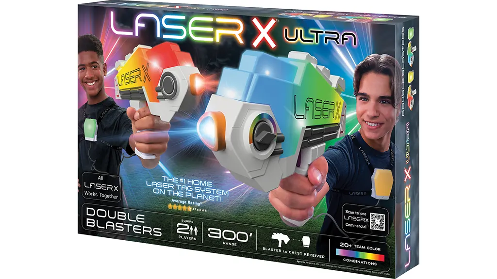 Ovaj laserski tag set sadrži blasterske zrake koji se odbijaju od zidova i mogu pogoditi protivnika s udaljenosti do 90 metara. Pomoću prijemnih prsluka djeca mogu saznati koji ih je protivnik pogodio.