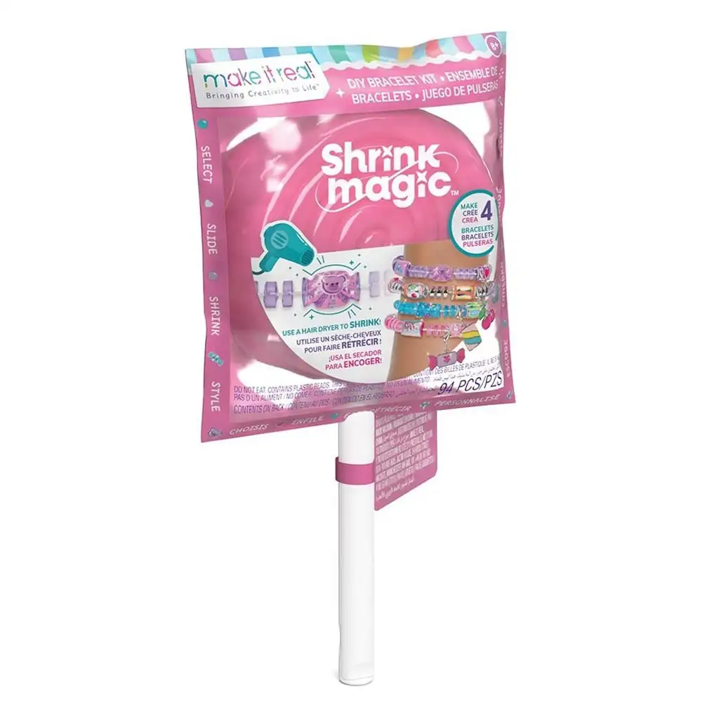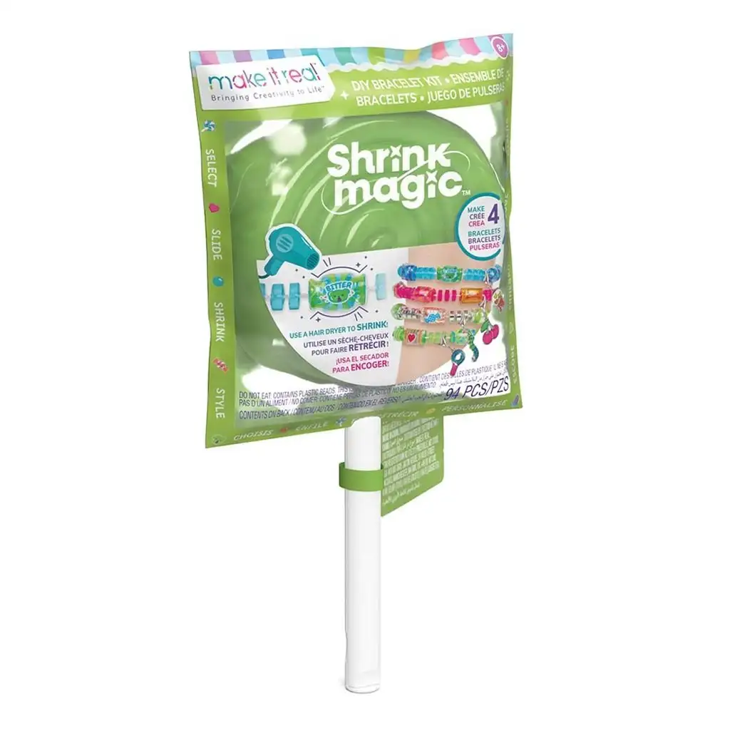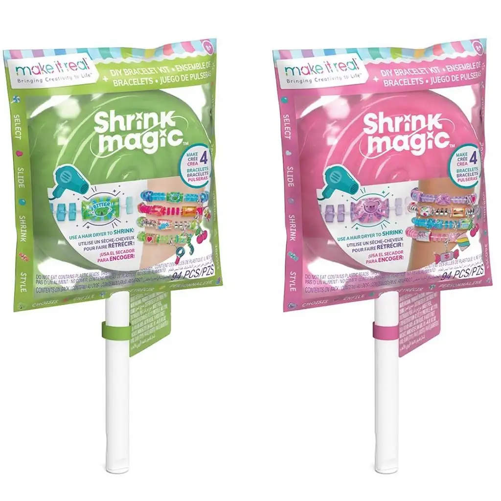 Setovi za izradu nakita "Shrink Magic" podižu dizajn nakita na potpuno novu razinu. Svaki paket sadrži materijale potrebne za izradu četiri jedinstvene narukvice koje se nakon pohrane pojavljuju u prekrasnom, lizalica oblikovanom pakiranju. Kao dio kreativnog procesa, djeca mogu doživjeti umjetnost skupljanja: mogu oblikovati unaprijed tiskane materijale, a zatim ih smanjiti pomoću sušila za kosu. Ovo nije samo uzbudljiva i zabavna aktivnost, već također promiče razvoj kreativnih vještina i motoričkih sposobnosti. Set je dostupan u različitim bojama i temama, tako da svako dijete može pronaći verziju koja odgovara njegovom ukusu.