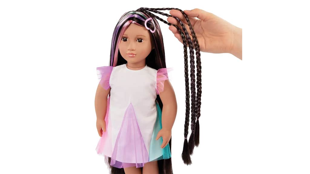 Pletenje, igra i stil s ovom 18-inčnom lutkom koja ima produžive pletenice. Okrenite gumb na stražnjoj strani lutke kako biste produžili kosu i vratite ga natrag kako biste je skratili. Paket uključuje vodič za inspiraciju frizura, dvije kopče, dva produžetka i češalj. Dostupna je pod imenima Tania, Tessie i Tasha. Ova lutka ne samo da razvija kreativnost djece, već i njihovu spretnost dok izrađuju različite frizure. Tijekom igre djeca mogu naučiti osnove njege kose i izraziti svoj stil. Sjajan poklon koji pruža sate zabave.