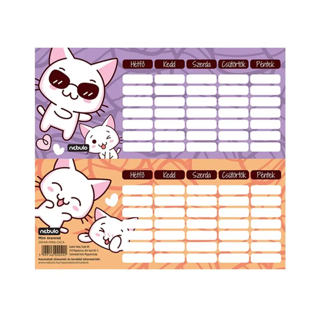 Nebulo: Jednolisni, obostrani mini raspored sati s mačkamaNebulo: Jednolisni, obostrani mini raspored sati s mačkama