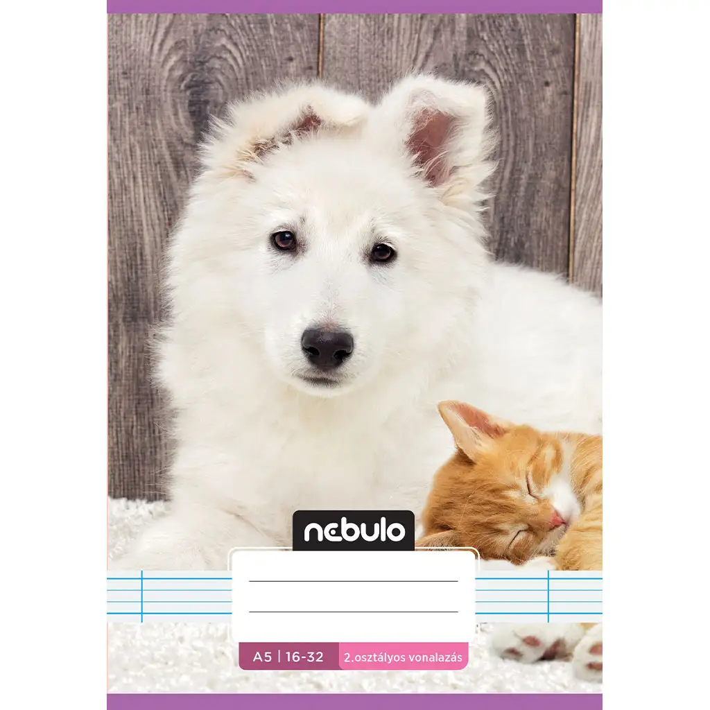 Nebulo: Spajalica bilježnica s crtama za 2. razred, A5, 16-32 stranica, s motivom slatkih i prijateljskih kućnih ljubimaca ocjena: