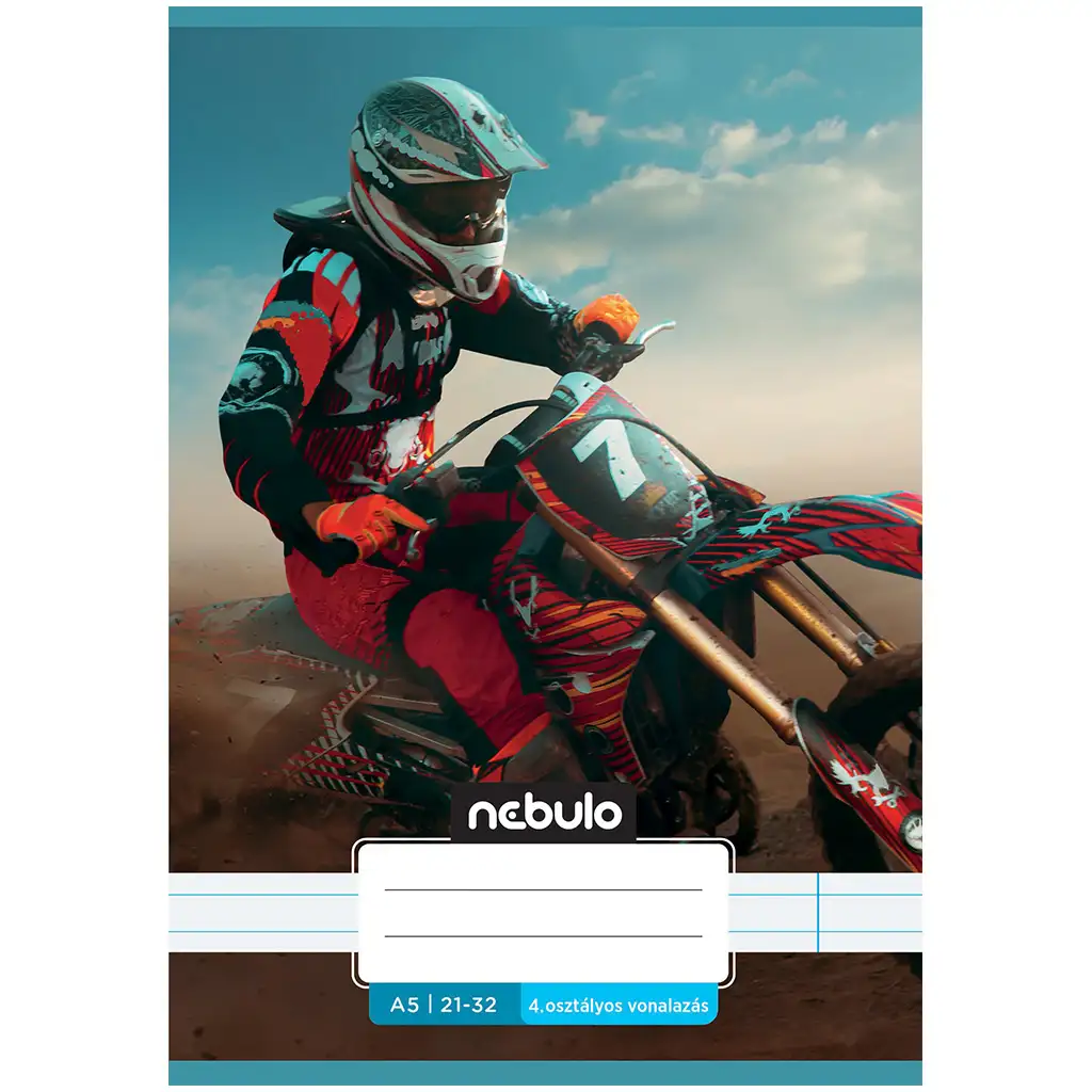 Nebulo: Spajalica bilježnica s linijama za 4. razred s motivom trkaćeg motora 21-32 A/5Nebulo: Spajalica bilježnica s linijama za 4. razred s motivom trkaćeg motora 21-32 A/5