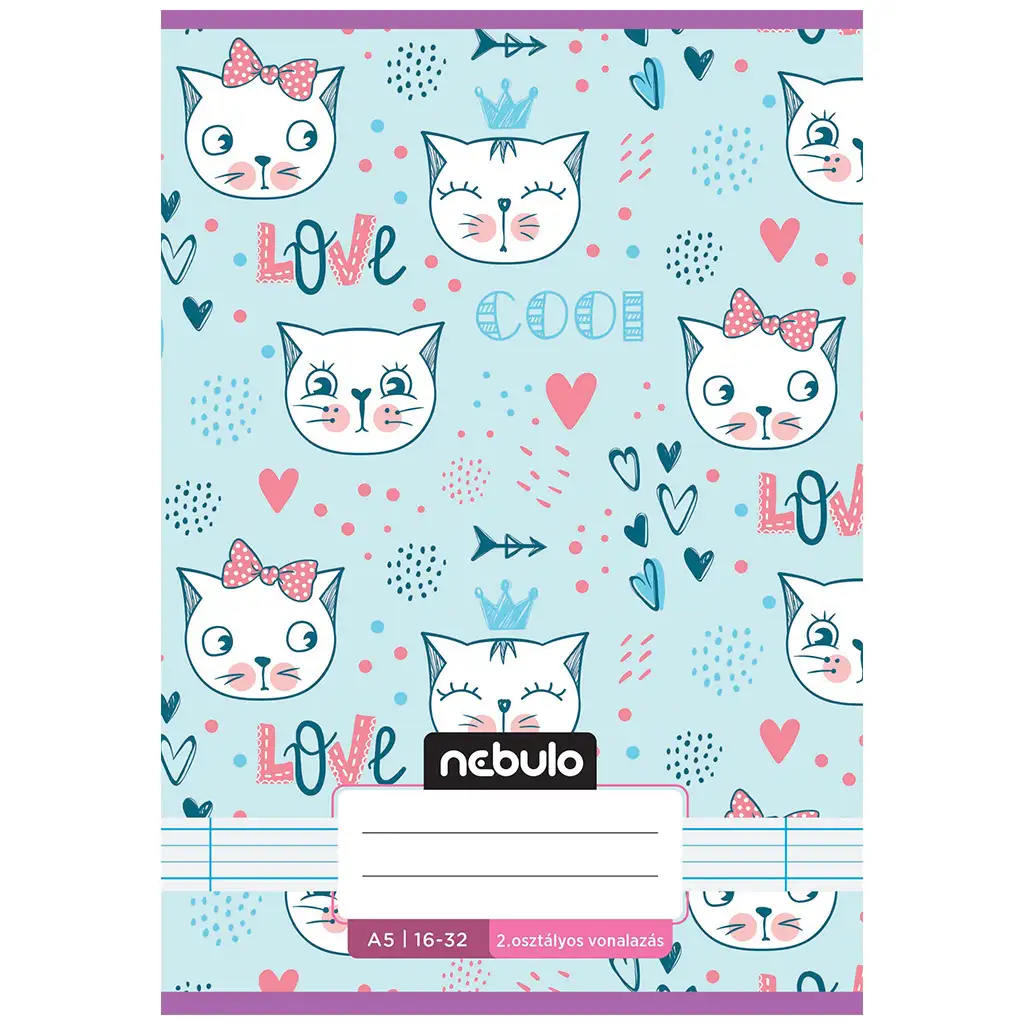 Ova Nebulo bilježnica s prošivenim uvezom, pastelno plavom podlogom i uzorkom mačaka zajamčeno će izmamiti osmijeh na lice svakom drugom razredu, posebno ljubiteljima mačaka. Razigrani dizajn s preslatkim crtežima mačaka, srcima i veselim natpisima (npr. "LOVE", "COOL") stvara zaista ugodnu atmosferu, pa će djeca rado posegnuti za njom, čak i kad je riječ o učenju.