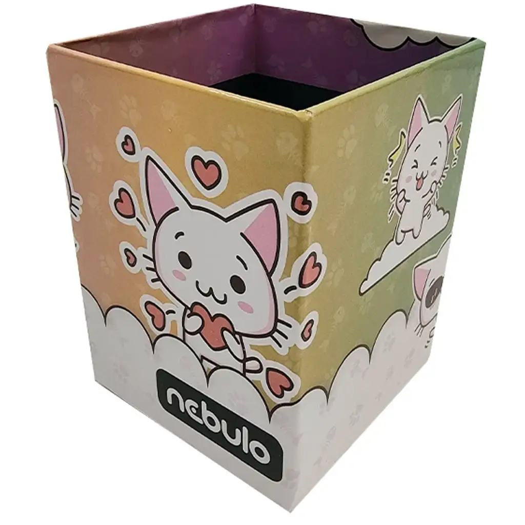 Nebulo stolni držač za pribor za pisanje – s motivom mačke – može biti veseli i simpatični dodatak svakom radnom stolu, bilo da se radi o dječjoj sobi, školskom kutku za učenje ili kućnom kreativnom kutku. Sve strane kutije ukrašavaju šarmantne, nasmiješene mace koje bacaju srčeka u zrak – zajamčeno će uljepšati tvoj dan i izmamiti osmijeh na dječje lice svaki put kad ga koristi.