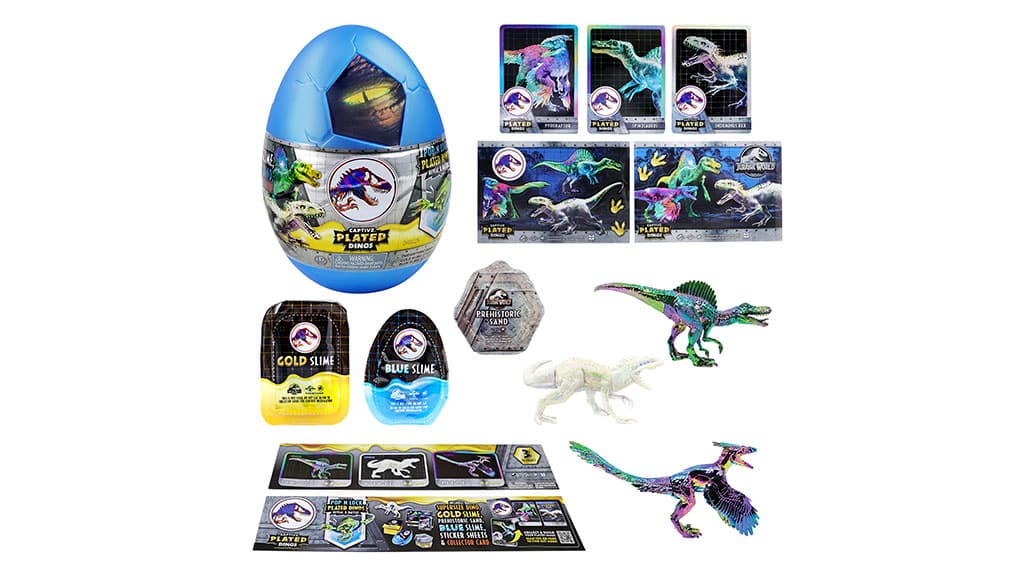 Djeca mogu razbiti jaje kako bi u njemu pronašli sastavljivog, ogromnog Pop N Lock oklopljenog dinosaura, tri vrste plastelina, kolekcionarski vodič, holografsku kolekcionarsku karticu i naljepnice. Ovaj set iznenađuje uzbudljivim iznenađenjima, mikorazvija kreativnost i finu motoriku. Djeca ne samo da se mogu igrati s dinosaurom, hanem i sama ga mogu sastaviti, što igru čini još zabavnijom. Uz priložene naljepnice figura može postati jedinstvena, a kolekcionarska kartica i vodič pomažu da saznaju još više o dinosaurima i ostalim članovima serije.