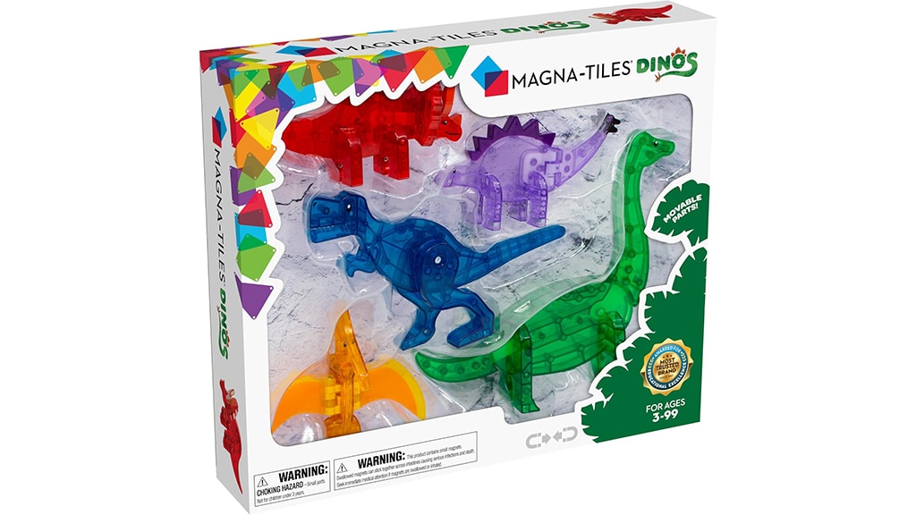 Ovih pet velikih magnetskih dinosaura dostupni su samo u ovom posebnom setu! U pakiranju se nalazi pet dinosaura: jedan T. rex (plavi), jedan Brachiosaurus (zeleni), jedan Stegosaurus (ljubičasti), jedan Triceratops (crveni) i jedan Pteranodon (žuti). Ovi dinosauri nisu samo šareni i zabavni, već imaju i visokokvalitetne magnete, što ih čini savršenima za učenje i zabavu djece. Otkrij svijet dinosaura s ovim jedinstvenim, uzbudljivim setom!