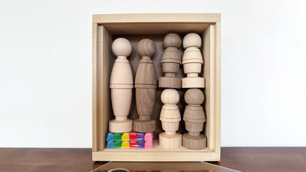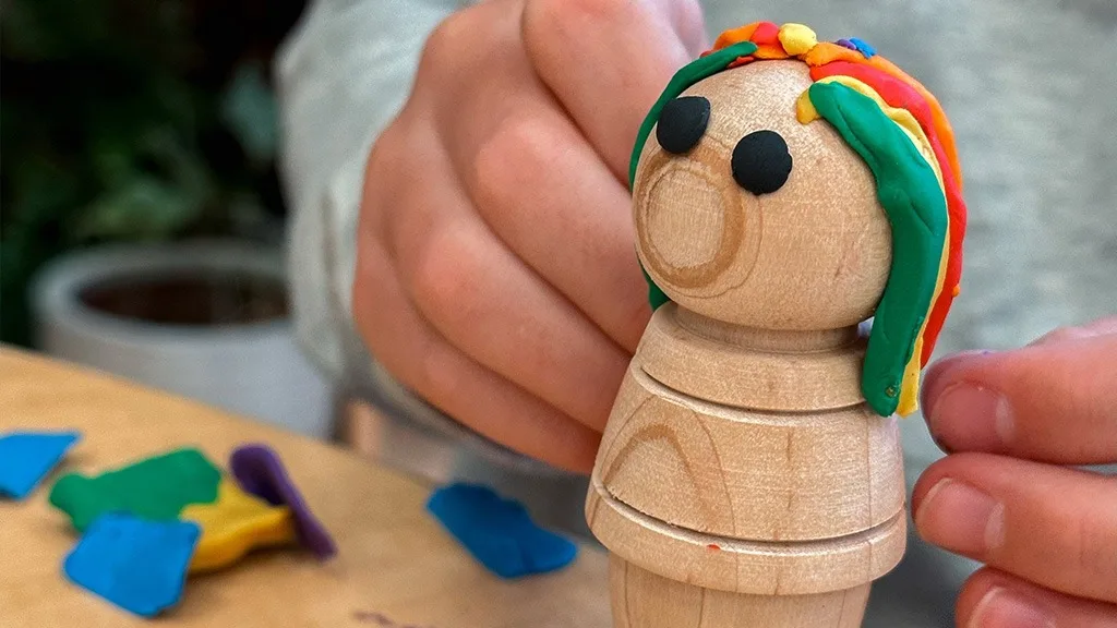 Ove održive drvene figure dostupne su u dvije veličine (Visoka i Niska), kao i u svijetlim nijansama javora, smeđim nijansama oraha i mješovitim drvenim nijansama. Djeca ih mogu ukrasiti priloženom glinom koja se ne stvrdnjava kako bi im dodali frizure, odjeću i još mnogo toga. Možete birati između pakiranih setova ili pojedinačnih figura.
