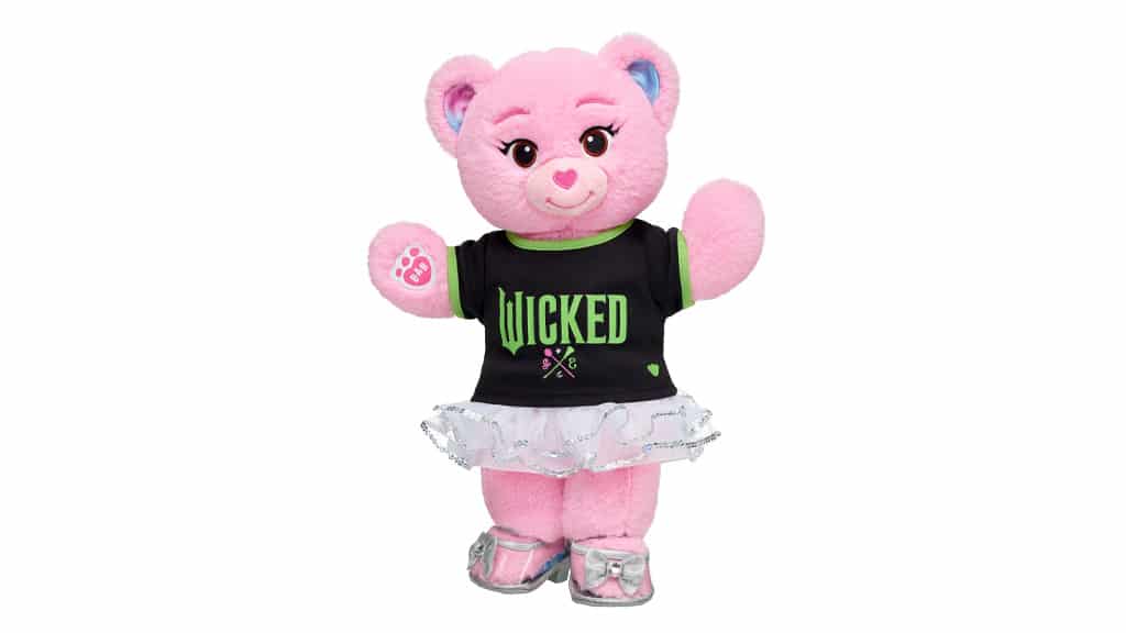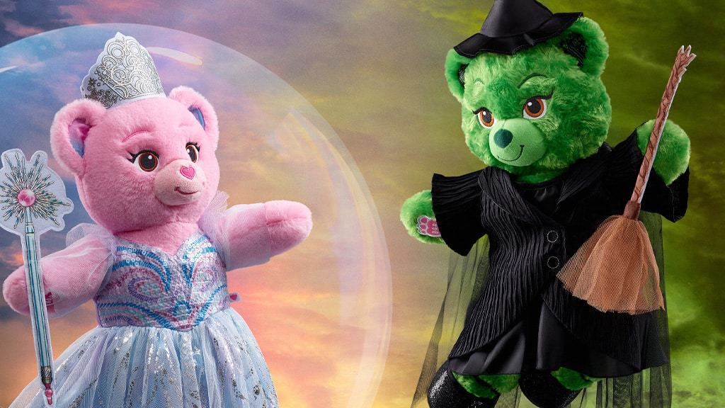 Djeca mogu obući svog medvjedića u majicu s logom Wicked! Ovaj poseban odjevni predmet dostupan je u ponudi Build-A-Bear, što omogućuje svima da svoj plišani medvjedić učine jedinstvenim. Za obožavatelje mjuzikla Wicked ovo je izvrsna prilika da atmosferu svoje omiljene priče prenesu i na svoje igračke. U Build-A-Bear trgovinama dostupno je i mnogo drugih tematskih odjevnih predmeta i dodataka, tako da djeca mogu odijevati svoje plišane prijatelje prema vlastitoj kreativnosti.Wicked Glinda Bear ima ružičasto krzno, nos u obliku srca i šiljaste trepavice. Ova popularna plišana figura ima plavo-ružičasti vrtložni materijal u ušima i na tabanima, što njezin izgled čini još posebnijim. Wicked Elphaba Bear može se pohvaliti prekrasnim, zelenim, teksturiranim krznom i naglašenim, zakrivljenim obrvama. Uši i tabane krasi zeleni-crni uzorak. Ovi plišanci nisu samo slatki, hanem zahvaljujući detaljnoj izradi, mogu biti pravi kolekcionarski komadi za svakog obožavatelja.