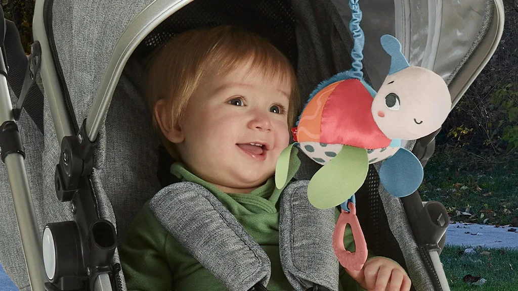 Djeca mogu stisnuti ovu plišanu kornjaču da skakuće i zveči. Pliš ima BPA-free grickalicu, lako se može pričvrstiti na dječja kolica, a materijal je izrađen od 80% reciklirane plastike.Ova zveckajuća kornjača privlači pažnju beba svojom ručkom koja se može povući i otpustiti te školjkaškim oblikom grickalice. Igračka se lako može pričvrstiti na dječja kolica, torbe za pelene i druge predmete, tako da je spremna za zabavu u pokretu.