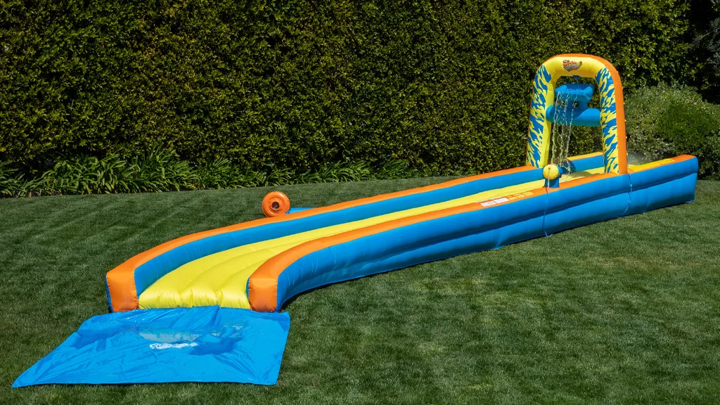 Novi Slip ‘N Slide Air ima površinu dugu 30 stopa napunjenu zrakom koju možete napuhati za jednu minutu ako koristite puhalo priloženo u paketu. Osim toga, ima automatski spremnik za vodeni prskot i interaktivni vodeni krevet, kao i povišeni zavoj na kraju.Svijetlo žuta, narančasta i plava vanjska igra bit će veliki hit na ljetnim rođendanskim zabavama ili tijekom vrućih, sparnih ljetnih dana.