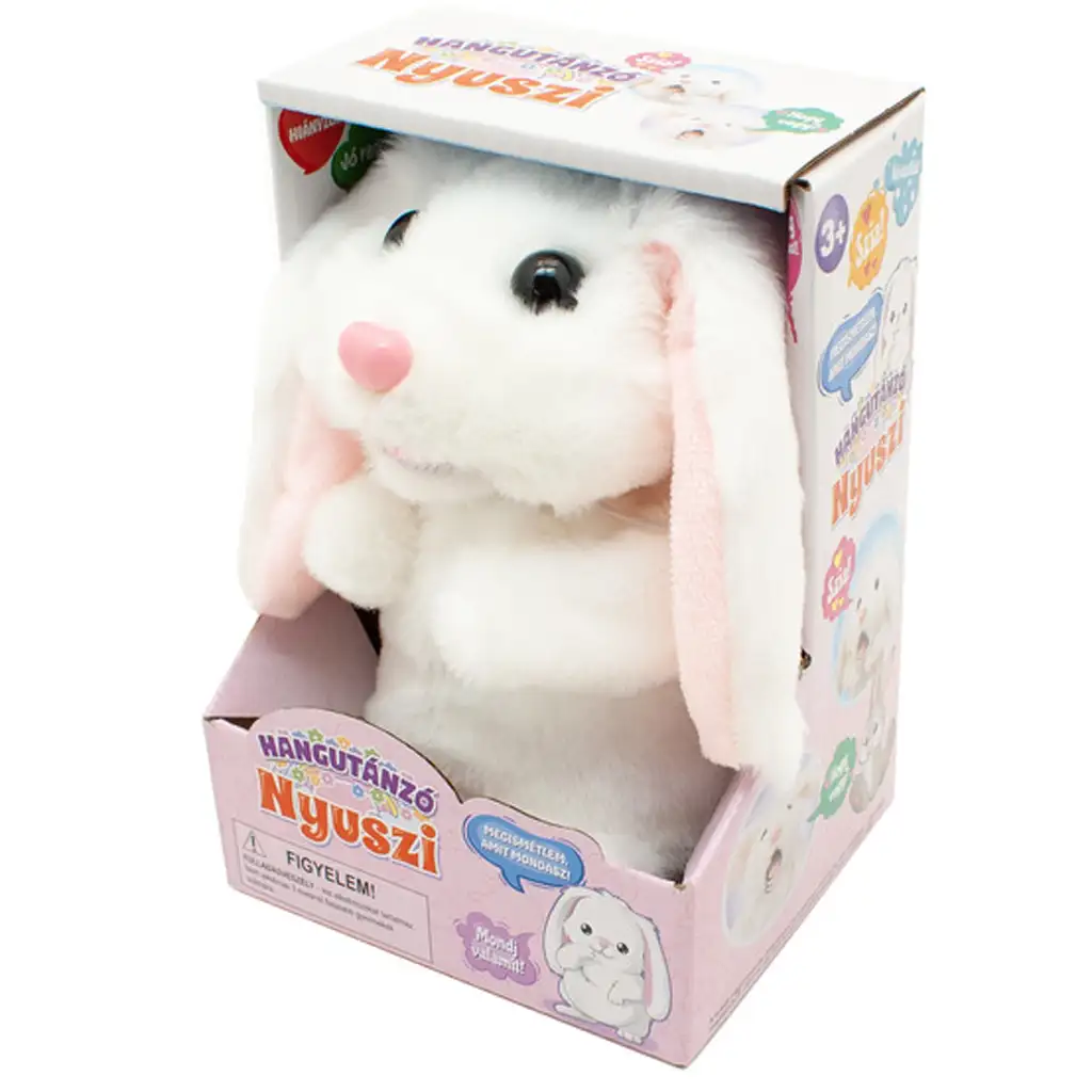 Ovaj slatki, bijeli zec koji oponaša zvukove zajamčeno će osvojiti srca djece! Ne samo da je mekan i savršen za grljenje, već je i zabavan suputnik koji će ponoviti svaku izgovorenu riječ slatkim, zečjim glasom. Djeca će obožavati način na koji zeko oponaša njih, dok pritom šarmantno miče svojim tijelom – to zajedničku igru čini još zabavnijom.