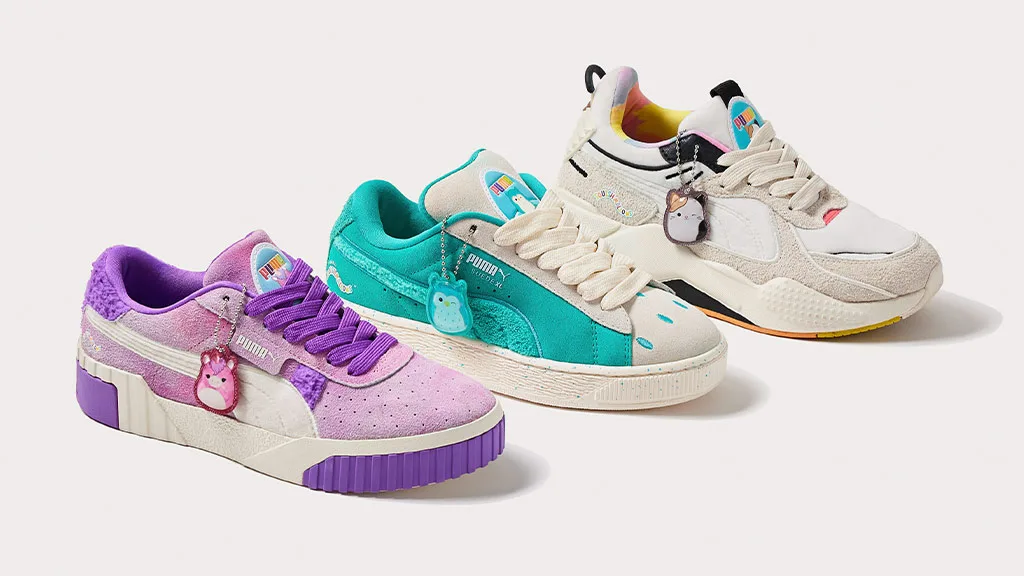 PUMA surađuje s mnogim popularnim dječjim markama, uključujući Trollove franšizu, L.O.L. Surprise, Miraculous, PAW Patrol i mnoge druge. PUMA Squishmallows kolekcija bit će dostupna od 15. ožujka.