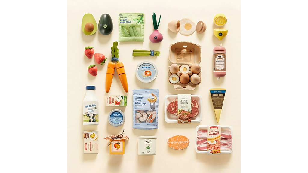 Pretvori igraonice u zamišljene kuhinje s kompletom za igru koji je razvijen u suradnji s nutricionistima! Djeca tijekom igre počinju shvaćati što je njihovu tijelu potrebno za rast, jer se na pakiranjima zamišljene hrane nalaze prehrambene informacije. Organic Play Food Collection sadrži organsku, drvenu hranu iz svih kategorija prehrambene piramide, kao što su voće, povrće, mliječni proizvodi i proteini. Ovaj set nije samo zabavan, već pomaže djeci razviti zdrave prehrambene navike, dok istovremeno potiče njihovu kreativnost i socijalne vještine.