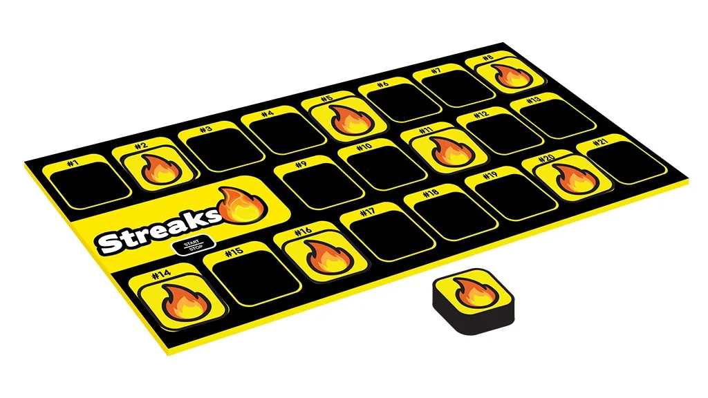 Streaks je lako za naučiti i zabavan kooperativni izazov u kojem igrači moraju surađivati kako bi prošli kroz 21 pravilo prije nego što vrijeme istekne!Streaks kombinira brzu igru s visokim pritiskom s apsurdnim pokretima i akcijama koje će cijelu družinu držati u smijehu. Odlično je što je ova igra kooperativna, ali ako želiš unijeti malo natjecanja u večer igara, sigurno se pravila mogu malo prilagoditi.