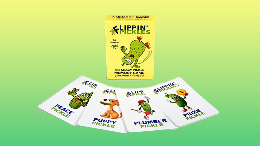 Pickle Everything Games dolazi s novom, obiteljskom kartaškom igrom s temom krastavaca pod nazivom Flippin’ Pickles! Igrači se naizmjenično okreću karte kako bi pronašli savršene parove krastavaca, dok zajedno proživljavaju uzbudljive i zabavne trenutke. Ova igra zajamčeno zbližava obitelj i potiče sve na nove i nove izazove u sparivanju. Flippin’ Pickles nije samo odlična zabava za djecu, već i za odrasle, a pritom razvija pamćenje i pažnju. Pripremi se, jer će tvoja obitelj poželjeti još više veselih igara s ovom posebnom kartaškom igrom!Ova je igra namijenjena igračima od 7 godina i starijima, a 2-4 pravi ljubitelja krastavaca mogu uživati u ovoj lako naučivoj igri memorije. Djeca trebaju uparivati različite karte, na primjer Vodoinstalater Krastavac, Nagrađeni Bockavi, Psić Krastavac i još mnogo drugih uzbudljivih likova nalazi se u špilu. Svaki član obitelji treba biti vrlo pažljiv, jer na nekim kartama mogu biti male razlike zbog kojih se ne podudaraju potpuno sa svojim parom. Igrači se natječu tko će osvojiti slanu krunu i postati Glavni Krastavac! Ova igra nije samo zabavna, već razvija i pamćenje, moć zapažanja i koncentraciju, pa je savršen izbor za obiteljska ili prijateljska okupljanja.