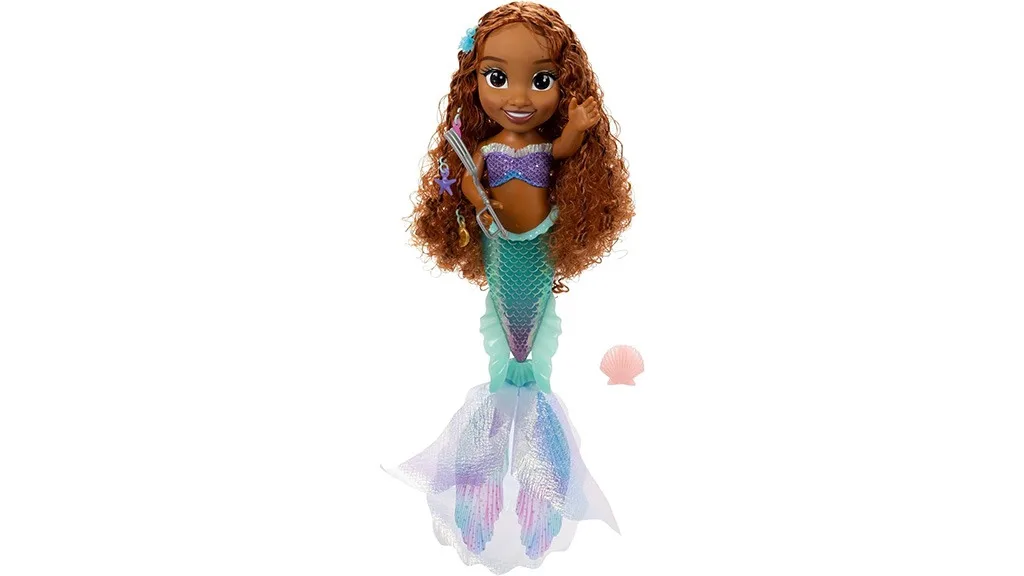 Igračka lutka namijenjena za dob od 3 godine i starije inspirirana je filmom iz 2023. godine "The Little Mermaid" i odražava Arielin novi izgled, stil i kosu, kako je vidimo u filmu.Dok se male morske sirene i morski dječaci mogu igrati s bebom u bazenu ili na plaži tijekom ljetnog razdoblja, beba pruža savršenu zabavu tijekom kupanja tijekom cijele godine.Lutka priča, pjeva i njen rep se još i svijetli — u vodi i izvan nje. Puna je igračaka i stvari, uključujući "dinglehopper", školjku i četiri čarolije koje djeca mogu pričvrstiti na lutkinu kosu. Kada djeca stave dodatke u njene ruke, lutka počinje pjevati pjesmu "Part of Your World" i izgovara slatke rečenice poput "Volim tražiti blago pod morem. Želiš li se pridružiti?" i "Sviđa li ti se moja kolekcija? Zar nije divna?"