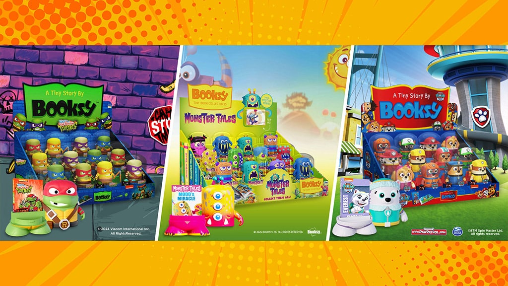 Booksy je nova serija mini knjiga kolekcionarskih predmeta koja kombinira igru s imaginarnim figurama s čitanjem i jedinstvenim mogućnostima izlaganja. Booksy figure dostupne su u nekoliko varijanti unutar tri različite linije: Monster Tales, originalno djelo PMI Kids’ World; Tales of the Teenage Mutant Ninja Turtles, inspirirano animiranom serijom; i Psići u ophodnji, inspirirano ikoničnim psićima Spin Mastera. Svaka figura dolazi u prozirnoj kupoli. Jednostavnim okretanjem i povlačenjem otkriva se minijaturna knjiga unutar nje.