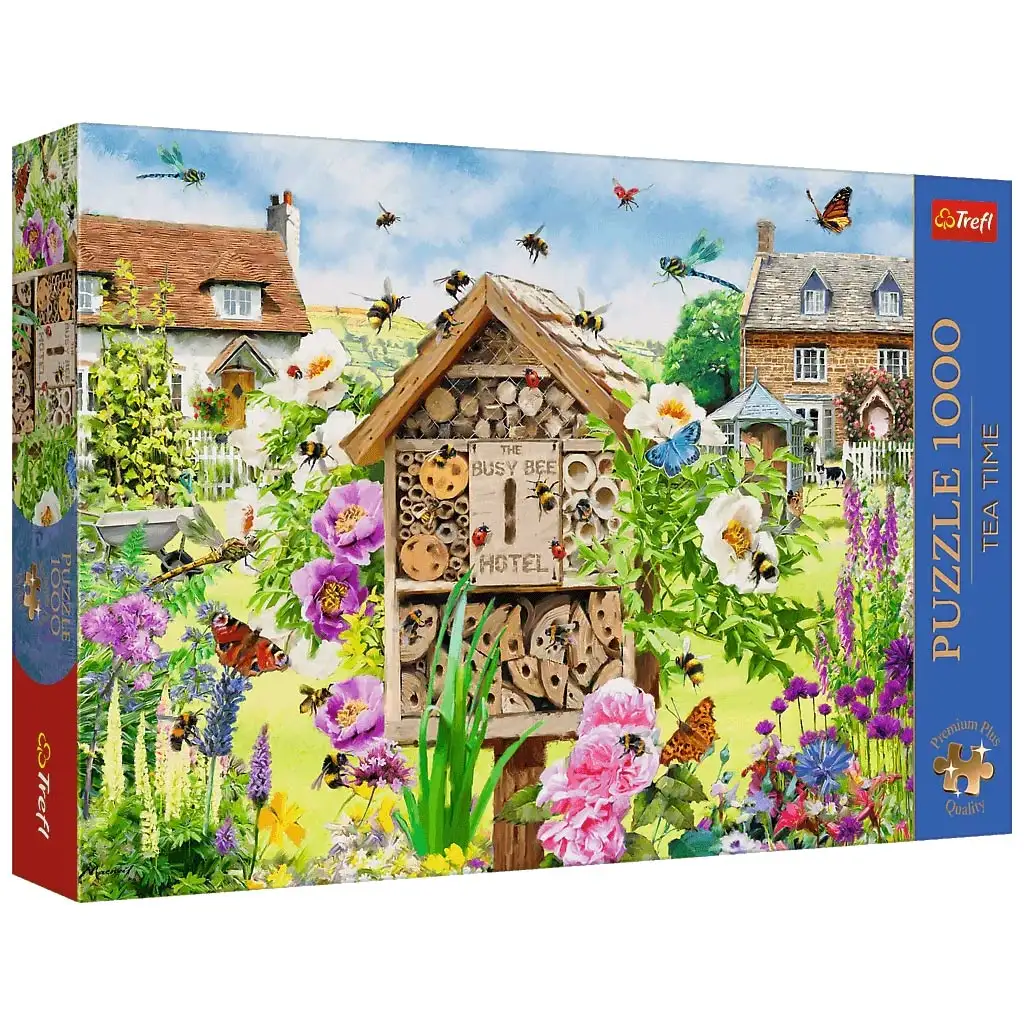 Uroni u idiličan, cvijećem mirisan ljetni vrt, gdje pčele marljivo lete između šarenog cvijeća! Slagalica „Zujajući vrt – Carstvo pčela i cvijeća” od 1000 dijelova prikazuje slikovitu scenu koja dočarava čudesni svijet prirode. U središtu se nalazi mali hotel za pčele s natpisom „The Busy Bee Hotel”, a oko njega vrvi od cvijeća, pčela, leptira i drugih kukaca – pravi užitak za ljubitelje prirode!