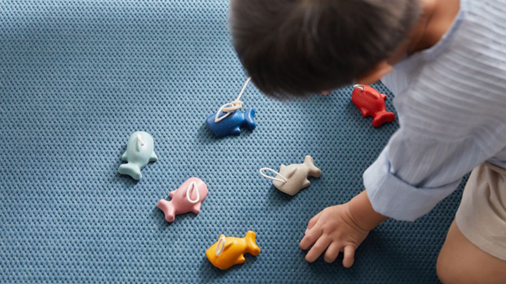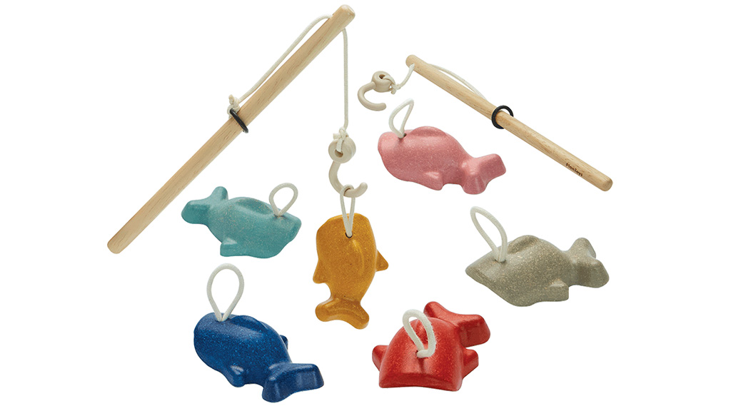 Set sadrži šest šarenih riba i dvije drvene ribolovne štapove. Štapovi se mogu prilagoditi različitim razinama igre. Ovaj održivi set izvrsno je prikladan za razvoj koordinacije ruka-oko, koncentracije i finih motoričkih vještina.