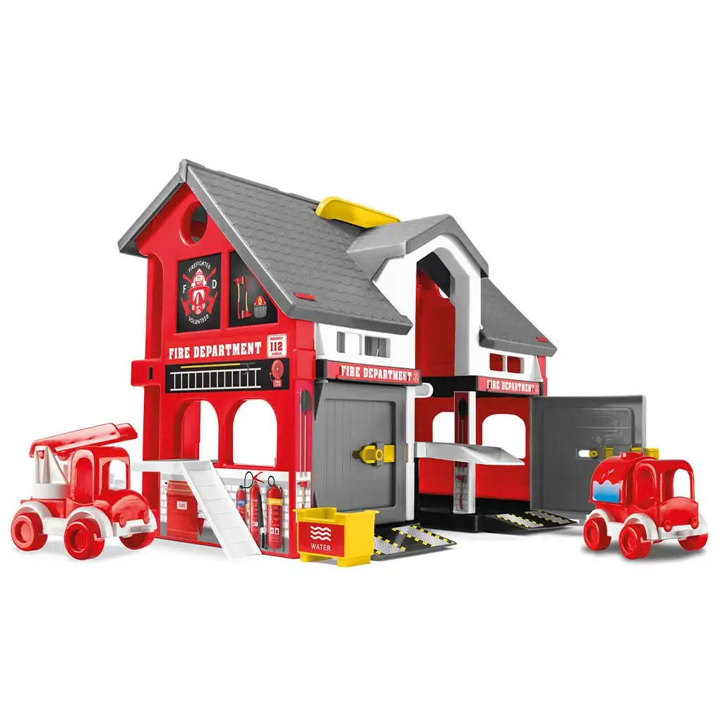 Set uključuje dva vatrogasna vozila koja se lako kotrljaju po rampama. Detaljne naljepnice, natpisi „Fire Department” i heliodrom čine igru još realističnijom. Čvrsta konstrukcija jamči izdržljivost, tako da će pouzdano pratiti dijete u svakodnevnoj igri kroz dugi niz godina.