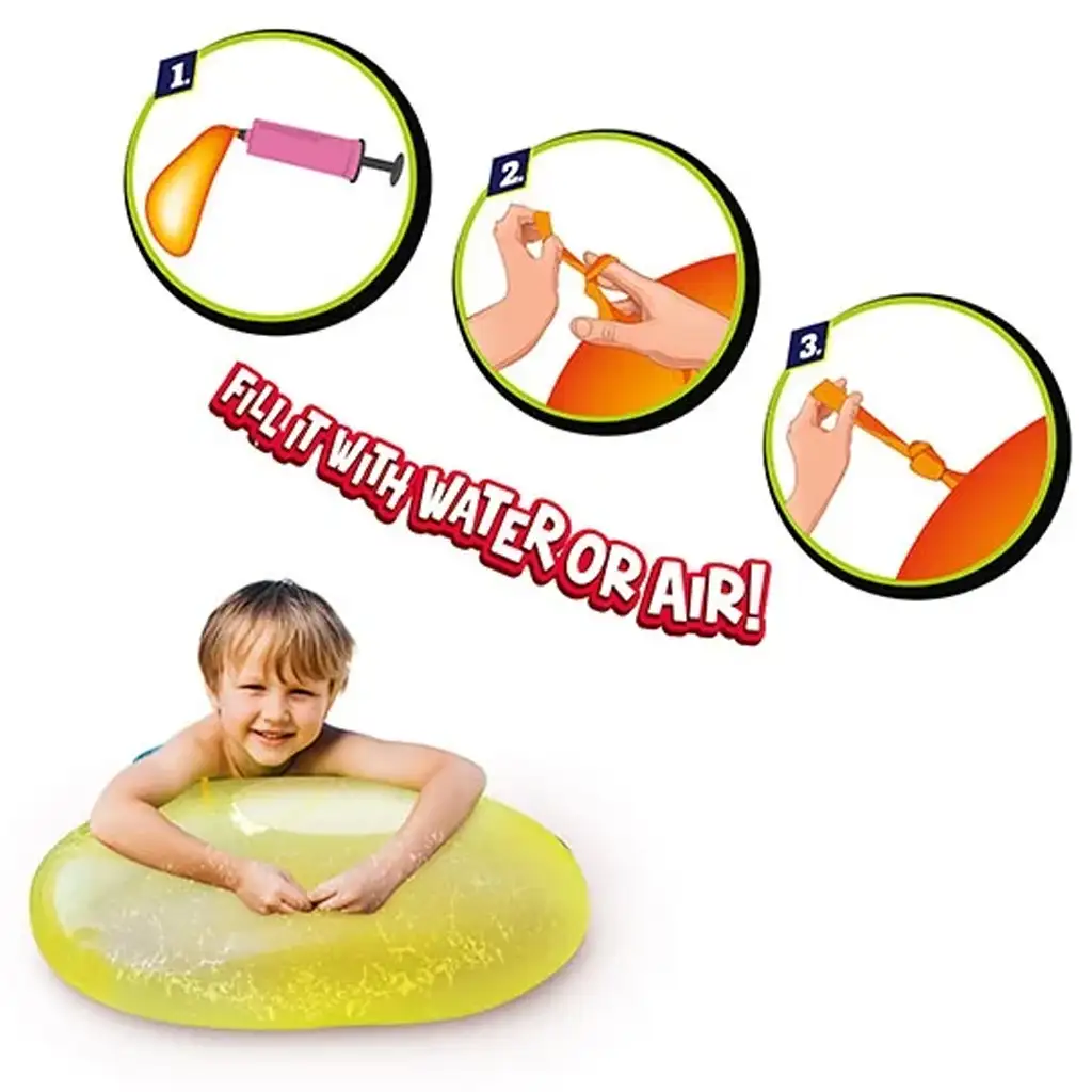 Ako je napunite vodom, postaje velika, mekana i rastezljiva lopta na kojoj možete ležati, skakati ili se kotrljati. Napuhana zrakom, može se koristiti kao lagana, divovska lopta koju možete bacati, kotrljati i odbijati. Zahvaljujući fleksibilnom i izdržljivom materijalu, možete uživati u igri dugo vremena.