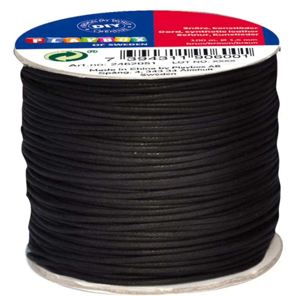 Upoznajte crnu umjetnu kožnu vrpcu PlayBox, neophodan dodatak za svaki obrtnički projekt! Ova vrpca dužine 100 metara i promjera 3,5 mm pruža dovoljno materijala čak i za velike kreacije. Izrađena je od izdržljive umjetne kože koja ne samo da je otporna, već daje i sofisticiran izgled svakom radu. Zahvaljujući klasičnoj crnoj boji, savršeno se uklapa u bilo koji stil, bilo da je riječ o modernom ili tradicionalnom dizajnu. Ova vrpca je savršen izbor za izradu nakita, dodataka, ali može poslužiti i kao dekorativni element u vašem domu.