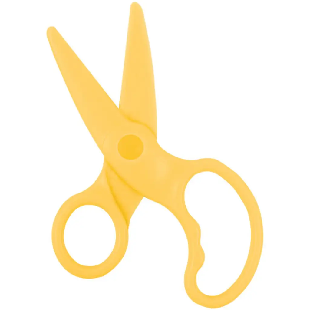 Žuta boja odiše vedrinom, dok je ergonomska drška posebno prilagođena malim rukama, omogućujući udobno, sigurno držanje i potičući usvajanje pravilne tehnike rezanja. Oblik drške potiče dijete da nauči pravilno držati i koristiti škare – na taj način razvija finu motoriku, koordinaciju oko-ruka i preciznost.