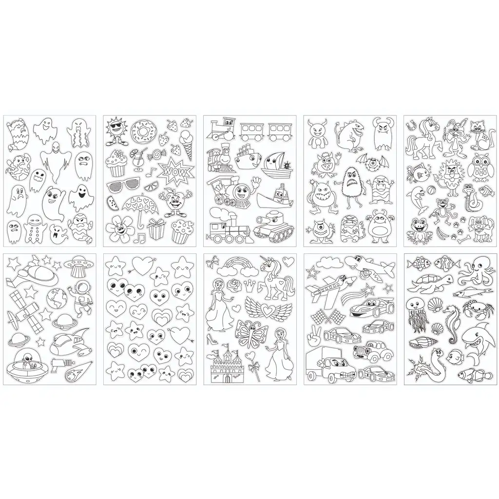 Ovaj paket sadrži deset listova, svaki list ima mnogo različitih motiva koje možete obojiti u svom stilu. Ukupno nudi 160 naljepnica, tako da ima dovoljno prostora za izražavanje kreativnosti.