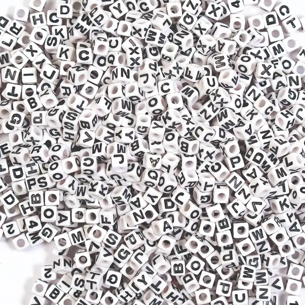 Boja perli bijelo-crna i uzorak s slovima su višenamjenski, bilo da se radi o narukvicama, ogrlicama ili čak privjescima za ključeve. Dimenzije perli (6,5 x 6,5 x 6,5 mm) idealne su za lako rukovanje, a otvor promjera 3,5 mm olakšava umetanje konca.