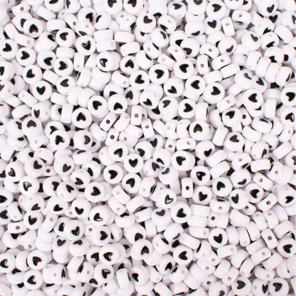 Kreativnost na djelu! Set od 300 perli s motivom srca savršen je izbor za sve koji vole ručne radove. Perle su bijele s crnim uzorkom srca, što daje čist, ali razigran izgled gotovom nakitu ili dekoracijama. Veličina od 7 mm idealna je za izradu dodataka – bilo da se radi o narukvicama, ogrlicama, privjescima ili drugim kreativnim projektima. Zahvaljujući preciznoj izradi, lako se nižu na konac ili gumicu, pa čak i mlađa djeca mogu uživati u radosti nizanja perli.