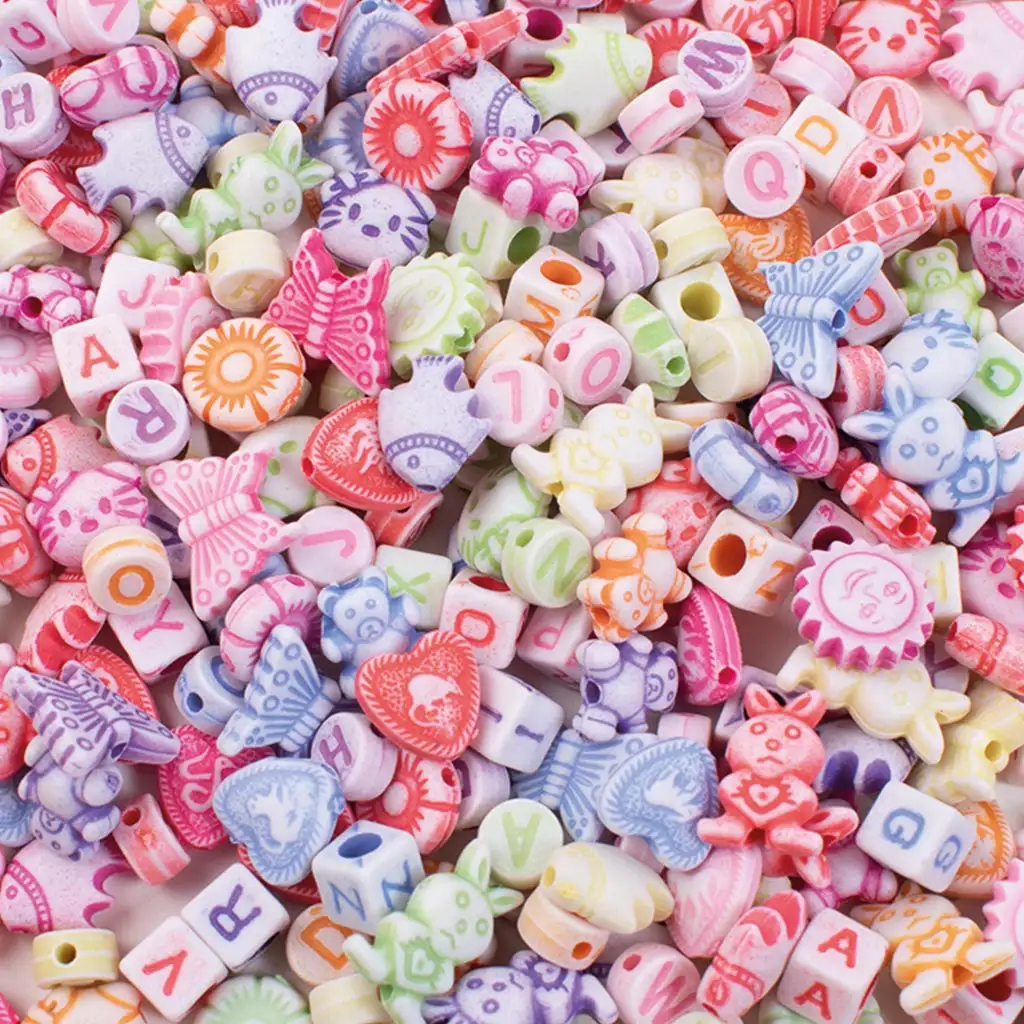 - 350 komada šarenih, uzorastih plastičnih perli
